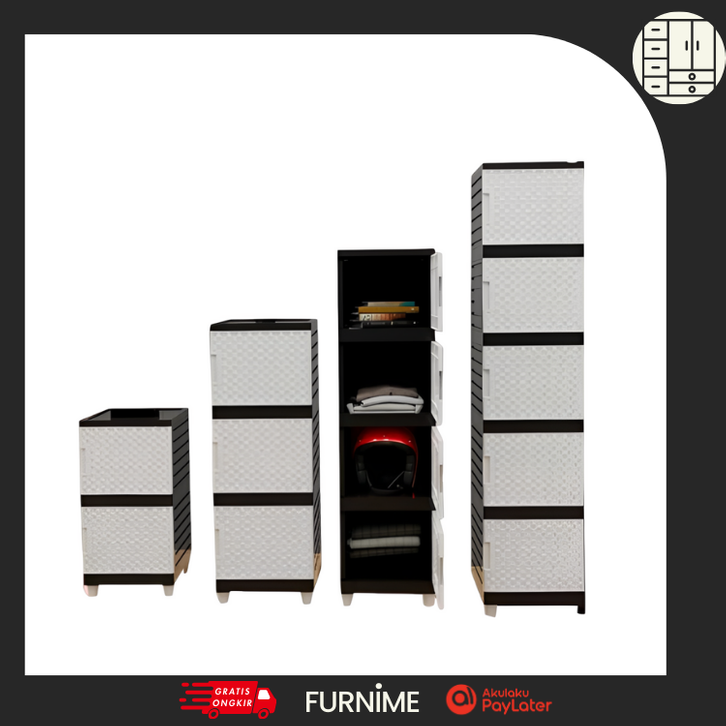 KINGDOM PLAST AURORA ZEBRA - Lemari Rak Susun Plastik Rotan Serbaguna 2 / 3 / 4 / 5 Susun | Untuk Baju, Buku, Helm & Sep