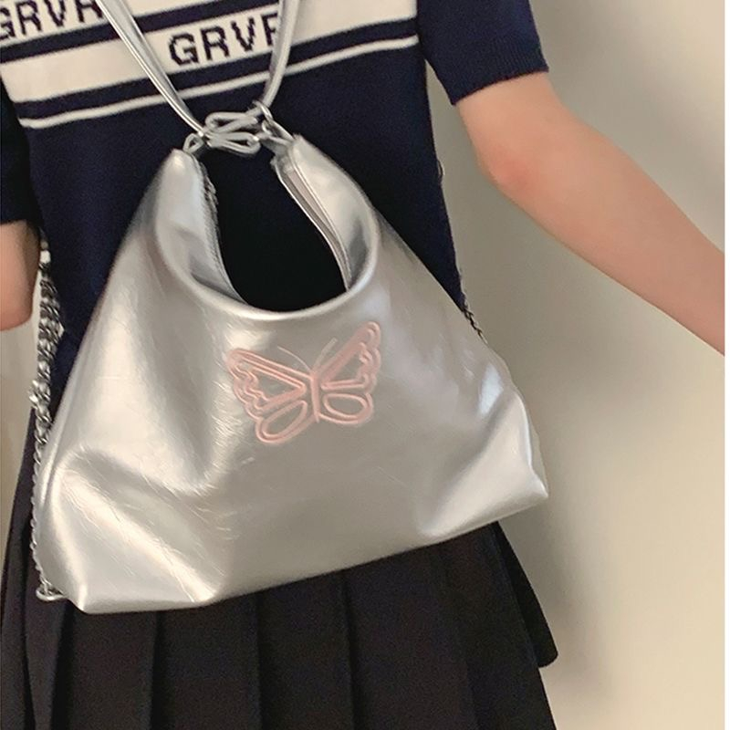 Ransel Wanita Kapasitas Besar Permukaan Lembut Kasual Ransel Gaya Baru Tas Ember Bahu Serbaguna Kupu-kupu Bordir Modis