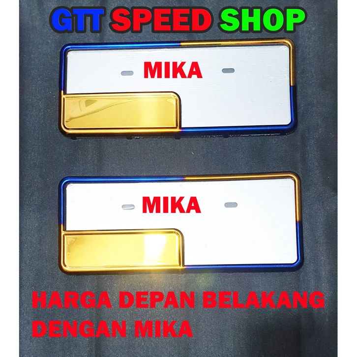 TERBARU TATAKAN PELAT NOMOR WARNA TWOTONE BLUE GOLD BAKARAN DENGAN MIKA TEBAL 2 PCS DEPAN DAN