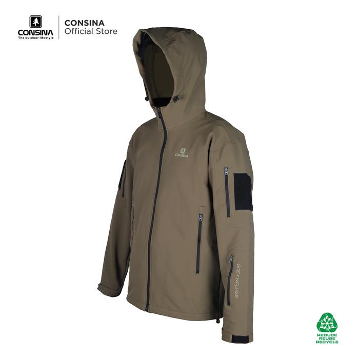 CONSINA GREY WOLVES JAKET GUNUNG OUTDOOR TRAVELLING | BAHAN SOFTSHELL SEMI STRETCH PREIUM - BIRU, XL