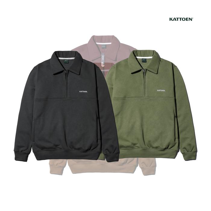 KATTOEN - HALF ZIPPER SERIES IV JAKET JUMPER HOODIE POLOS FLEECE PANJANG SWEATER - CARBON GREY, M