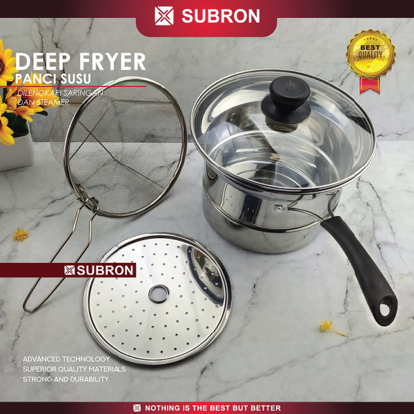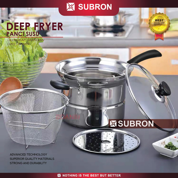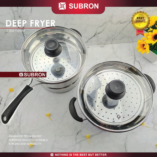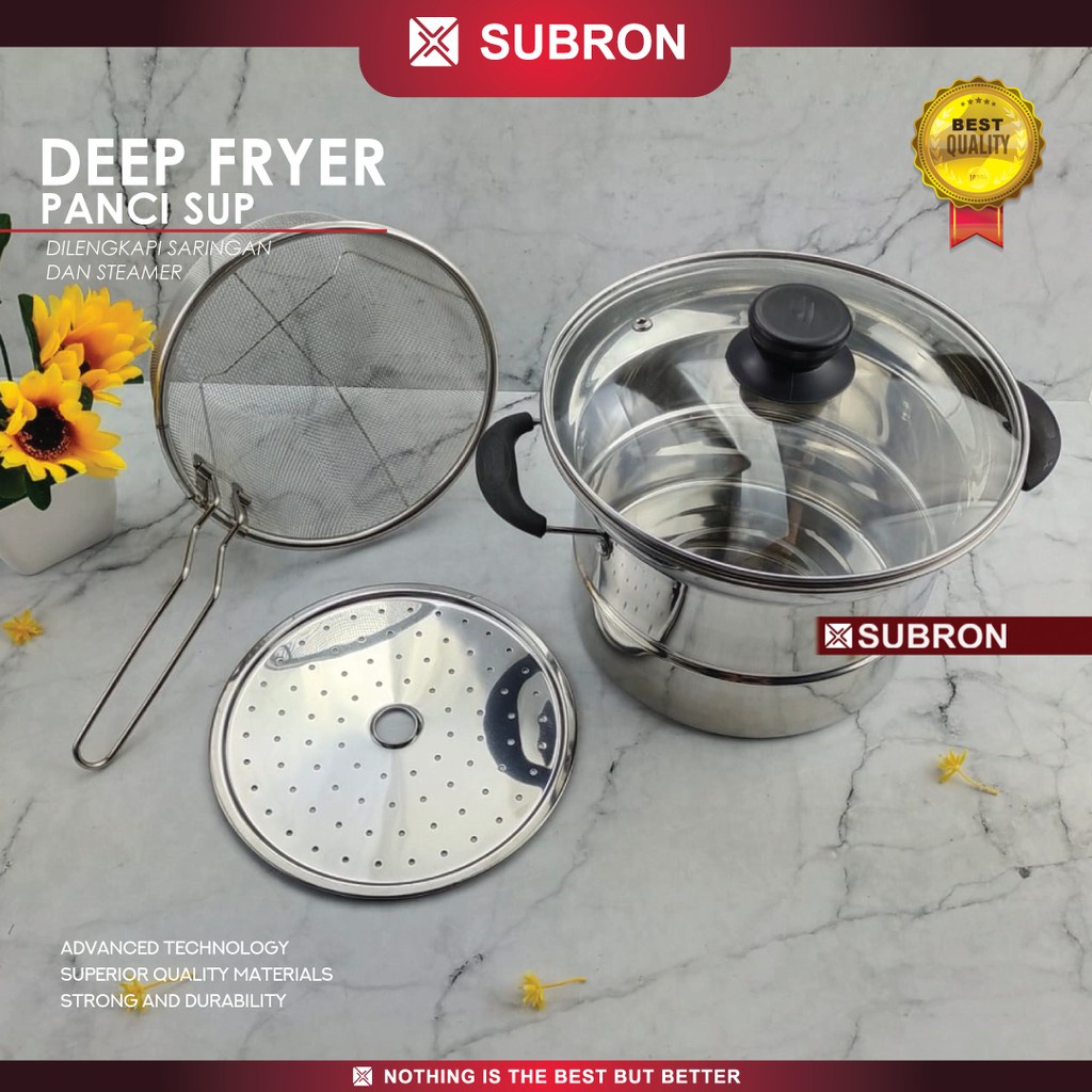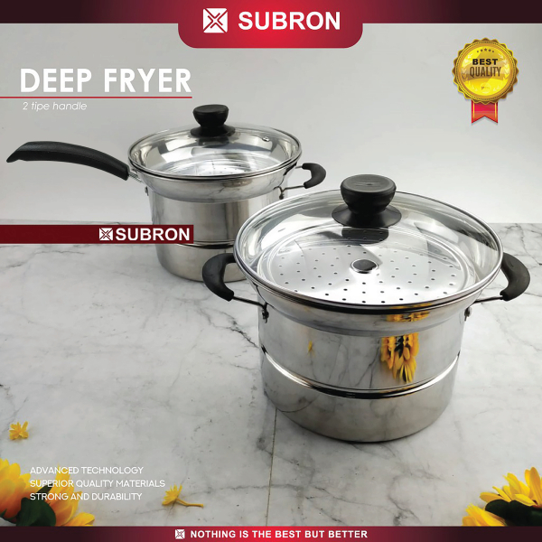 Panci Kukus Panci Penggorengan Serbaguna Subron Panci 22cm Deep Fryer Kukus Steam Saringan Multifungsi 3in1