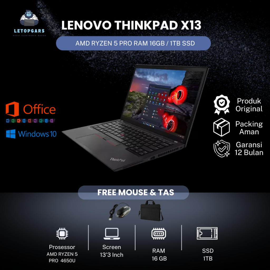 LAPTOP GAMING LENOVO THINKPAD X13 RYZEN 5 PRO Ram 16gb/1TB ssd - 8GB/256 SSD