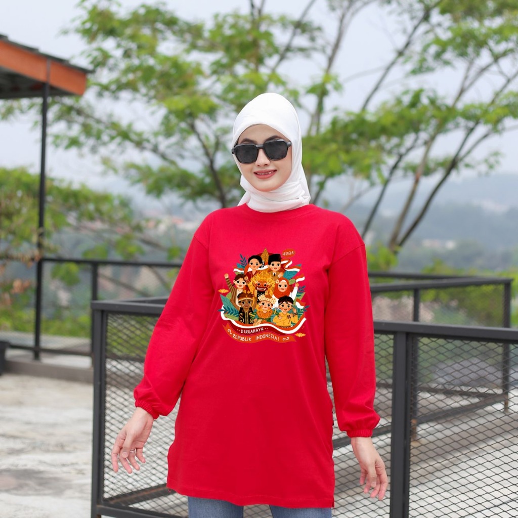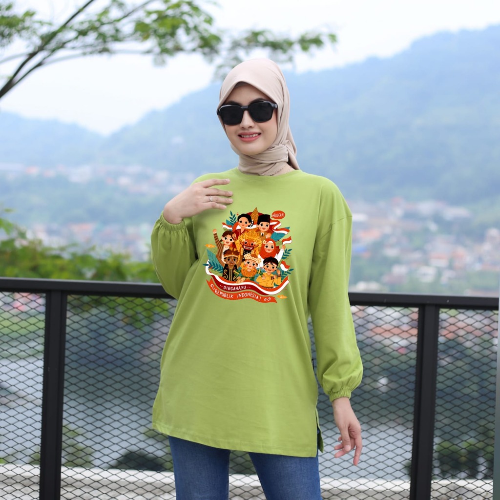 Kaos Oversize Wanita Lengan Panjang Kerut Katun 24s Premium Motif Ragam Budaya Indonesia