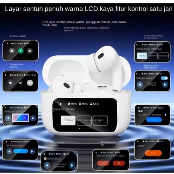 Headset Bluetooth Earphone READY A9 PRO ANC/ENC TWS Earphone Headset Bluetooth V5.4 Smart Screen Active Noise Reduction