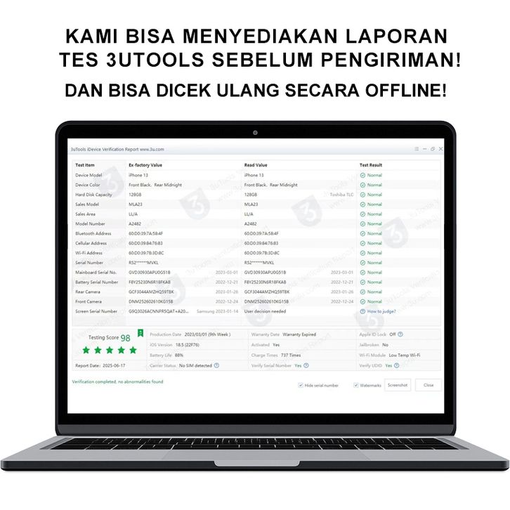 iPhone Fullset Murah iPhone 13 128GB 256GB IMEI Terdaftar 100 Original NOT Repaired 3 UTOOLS HIJAU SEMUA Sinyal All