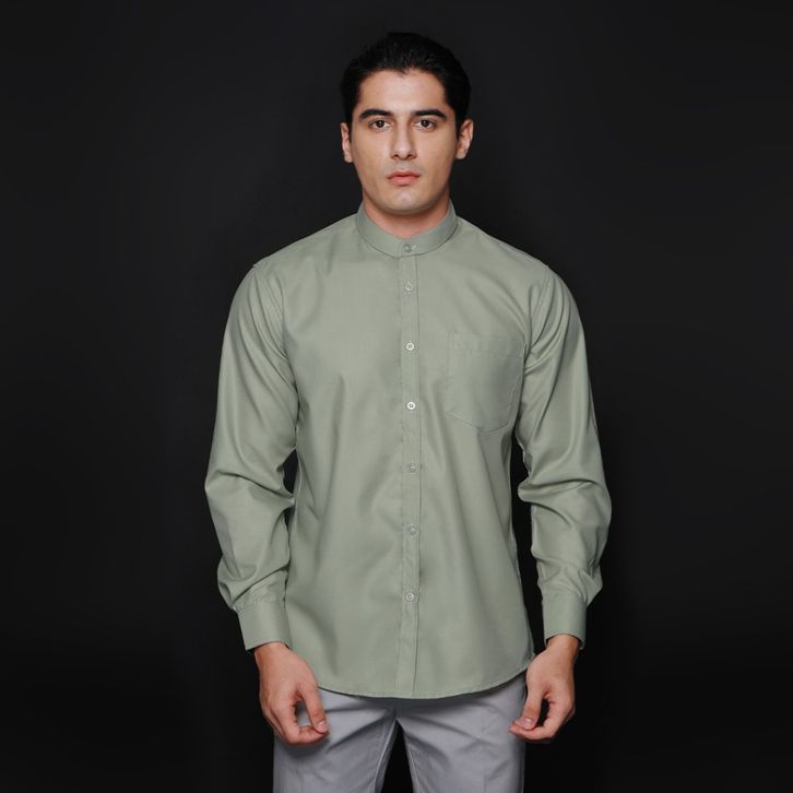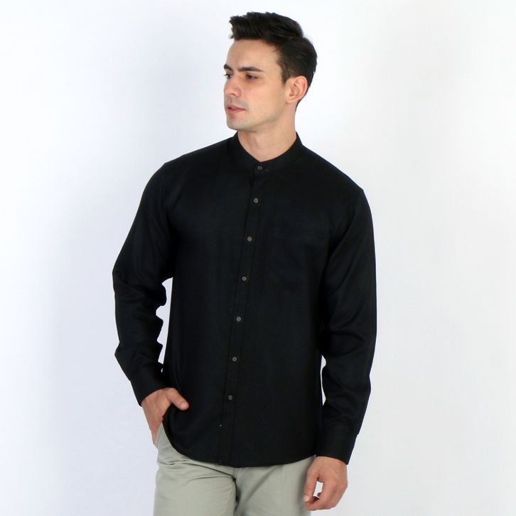 Kemeja Pria Lengan Panjang Simple Perfect Kemeja Pria Lengan Panjang Kerah Shanghai Polos Kemeja Koko Solid Basic