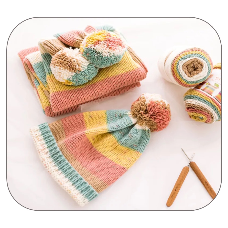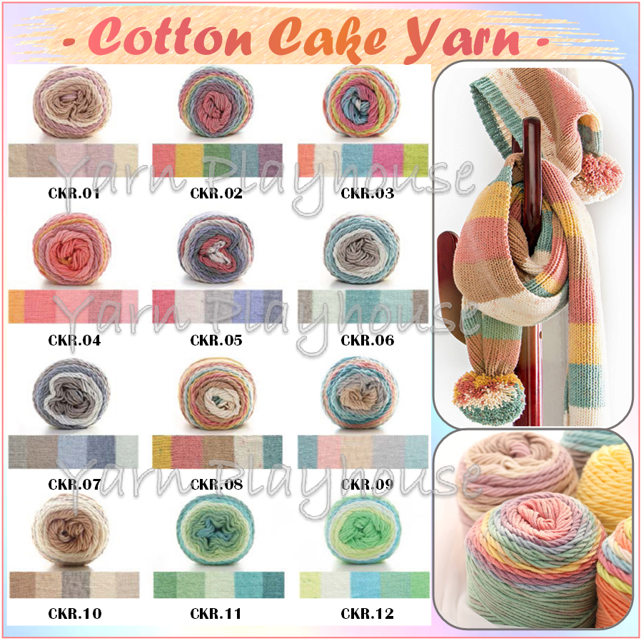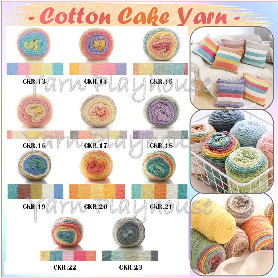 Benang rajut cotton cake yarn rainbow cake yarn katun susu pelangi ombre warna warni milk cotton cake yarn medium ply