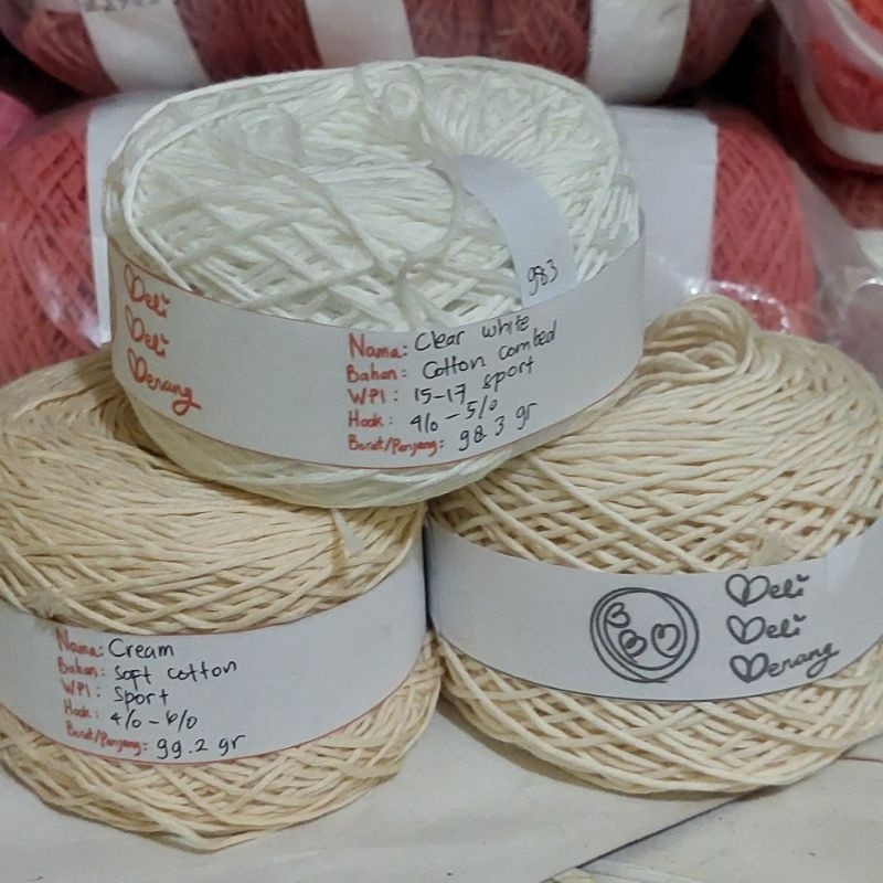 benang rajut cotton combed small ply PUTIH SERIES / benang katun