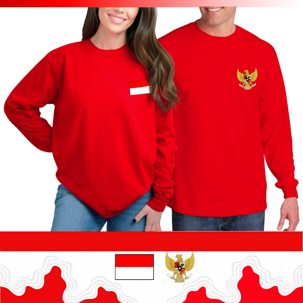 Kaos Atasan Pria dan Wanita Unisex Lengan Panjang Merah Agustusan Terbaru