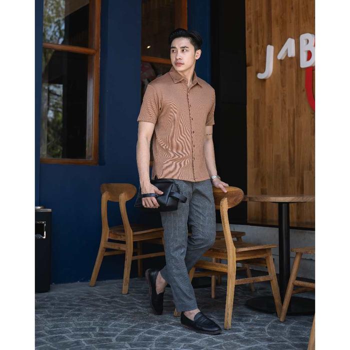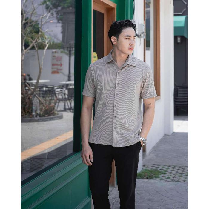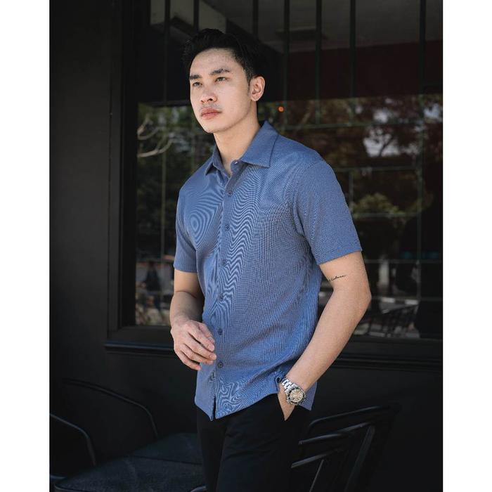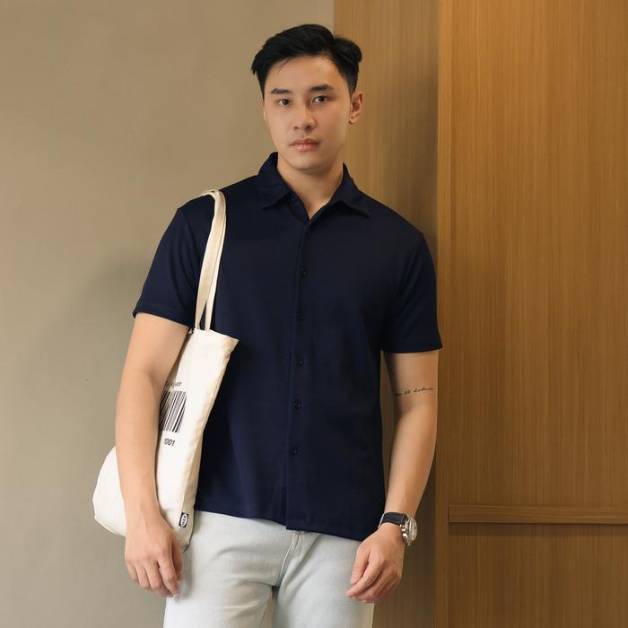 BYBLANK FUKUOKA KEMEJA KNIT LENGAN PENDEK - KEMEJA PREMIUM PRIA BAHAN KNIT - BLACK, S