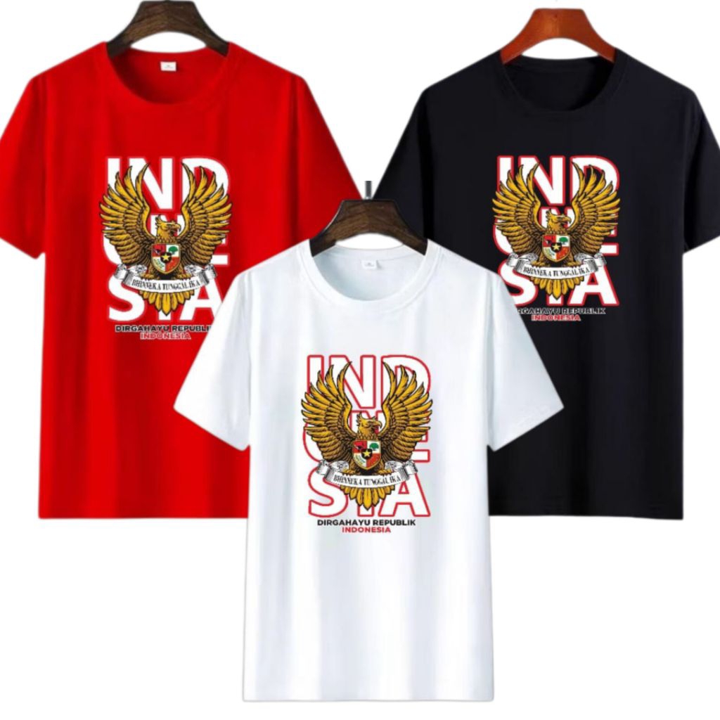 kaos agustusan merah putih hitam motif GARUDA L, XL, XXL / pria wanita / unisex lengan pendek