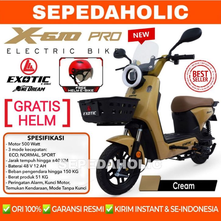 [Star]Sepeda Listrik EXOTIC X610 PRO BY PACIFIC 500 Watt Electric E Bike Removable Battery Bonus Helm
