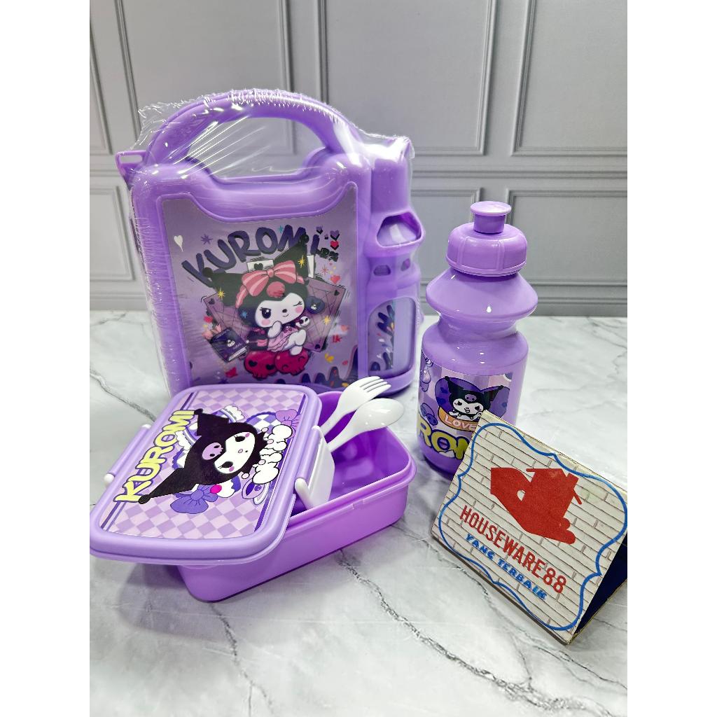 Tempat Makan Anak Karakter dan Botol Minum + Tentengan LUNCH BOX KUROMI BOX MAKAN KUROMI LABUBU