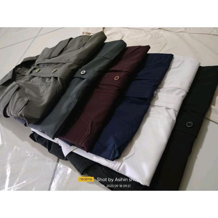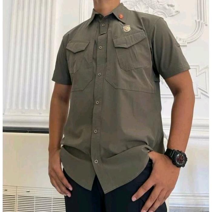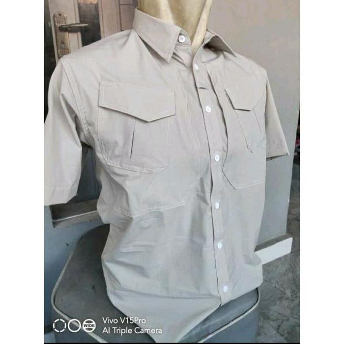 KEMEJA TACTICAL PASPAMPRES BAHAN CARTENZ LENGAN PENDEK SAKU MIRING TAHAN AIR NYAMAN DI GUNAKAN OUTDOOR ATAU INDOOR - HITAM, M