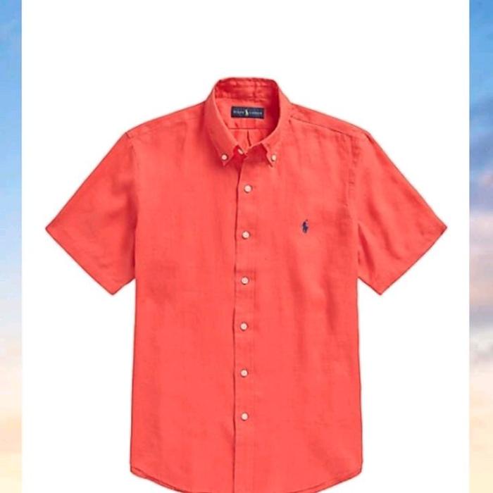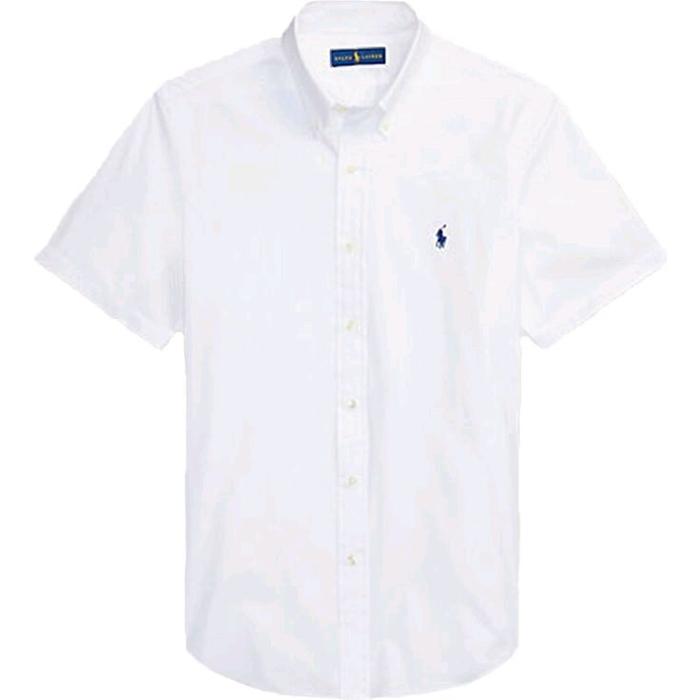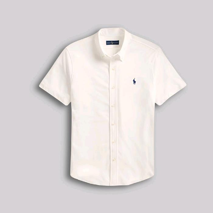 POLO,S RLP RLN KEMEJA LENGAN PENDEK BROKEN WHITE PRIA DEWASA KANTORAN SLIMFIT LOGO - PUTIH, M