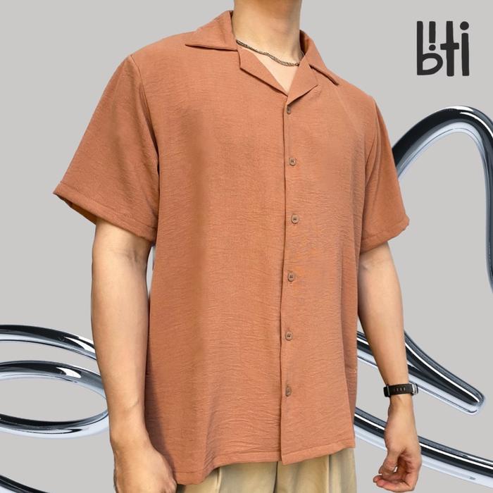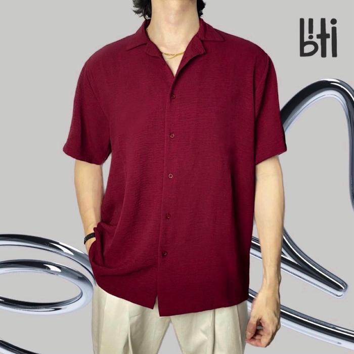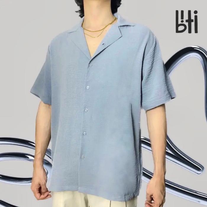 BITI CRINKLE SHIRT KOREAN STYLE | KEMEJA PRIA LENGAN PENDEK BERTEKSTUR KERAH CASUAL BAJU DISTRO - DOLPHIN GREY CRINKLE, XXL (LD 118 CM)