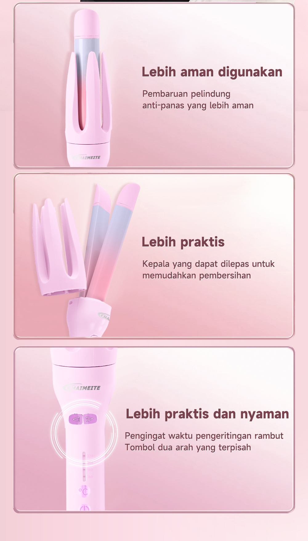 MAIMEITE 2in1 Catokan Curly Otomatis Catokan Keriting Rambut Otomatis Lon Negatif Catokan Rambut Panas Cepat Pengingat