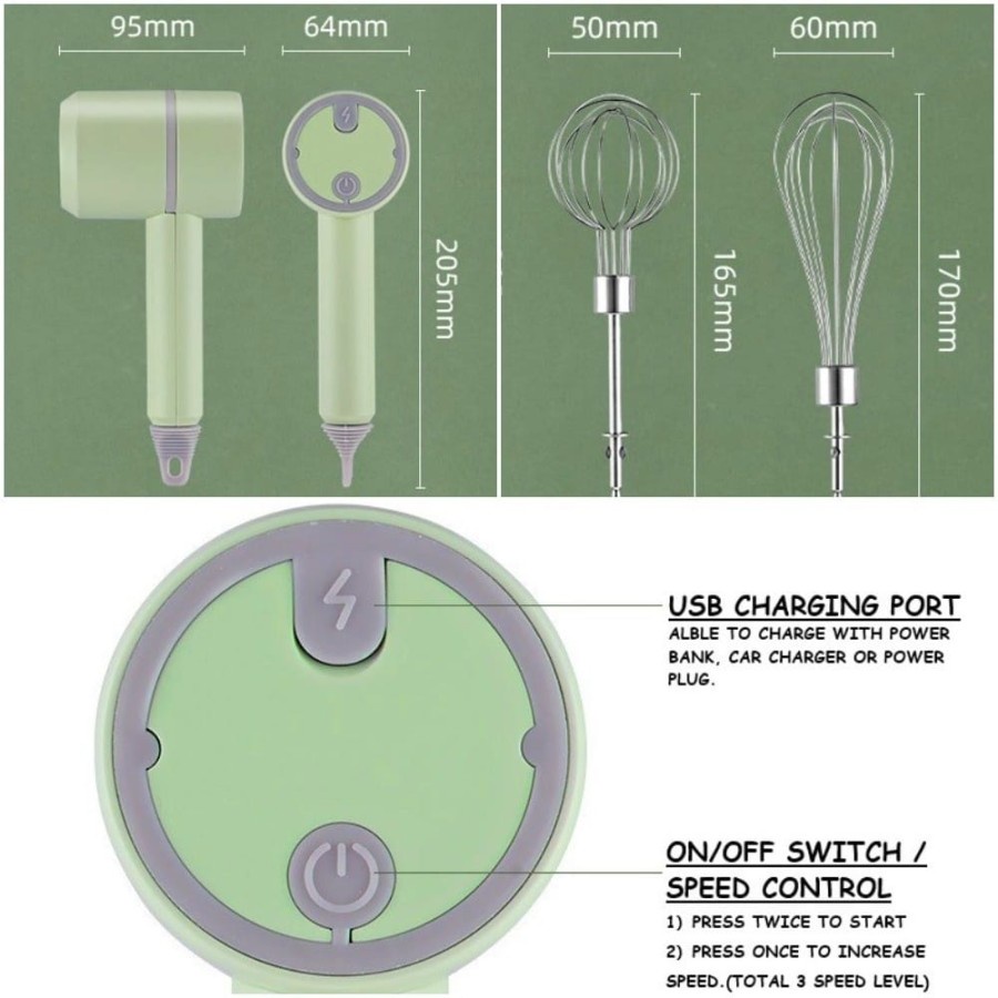 [Star] Wireless Portable 2 in 1 Hand Mixer / Pengocok Telur + Chopper