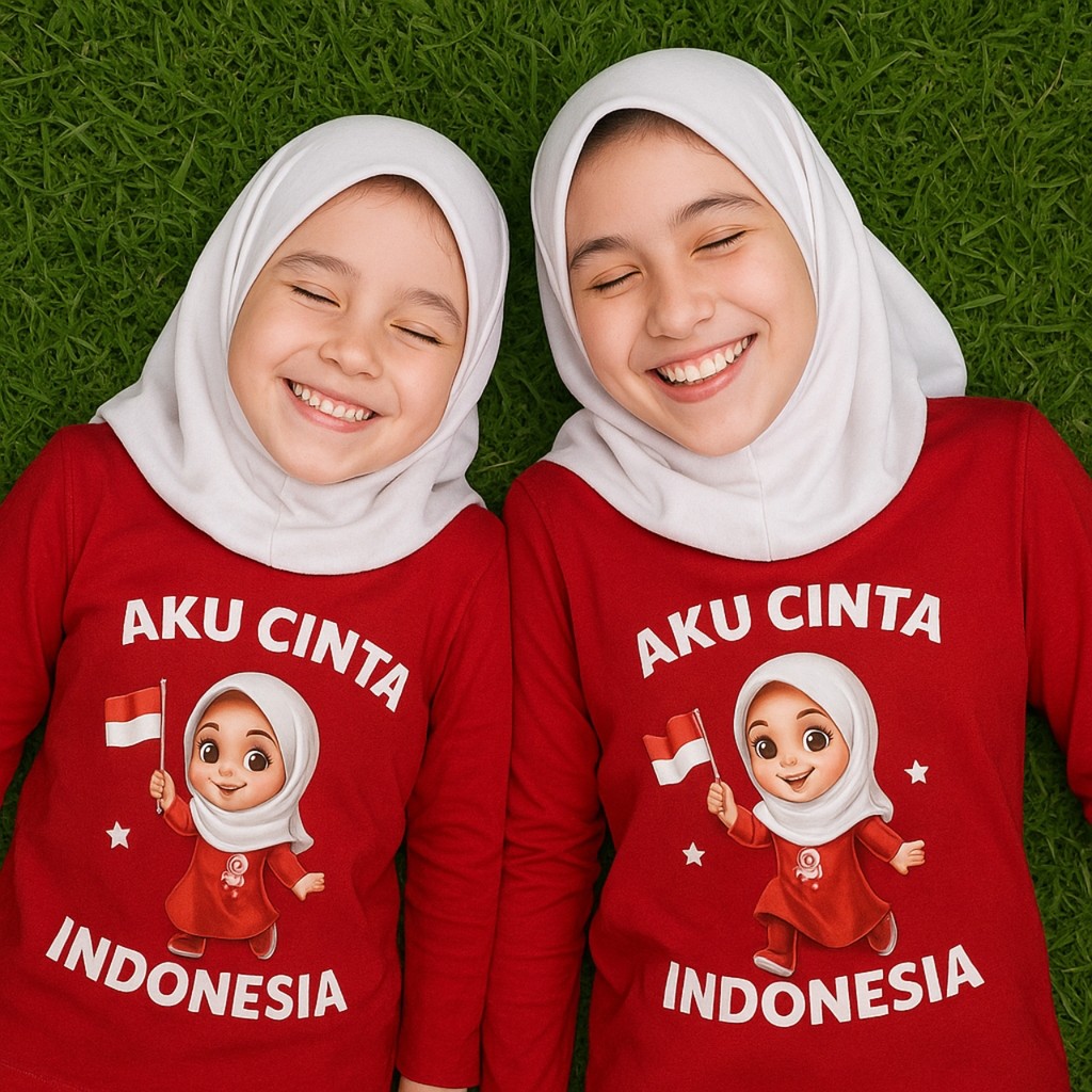 Bajuyuli Kaos Anak Perempuan Kemerdekaan Lengan Panjang Agustusan Atasan Baju Indonesia Merah Putih