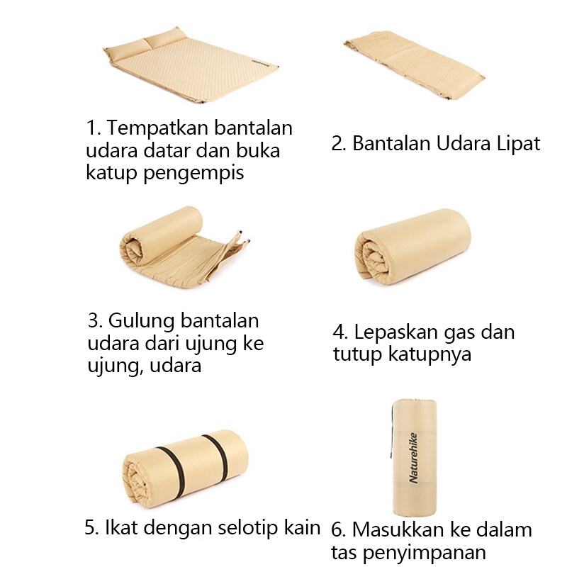 Naturehike Matras Angin Kasur Tiup Matras Camping Outdoor Sleeping Pad Gunung Ultralight Waterproof Kasur Lipat Self Inf