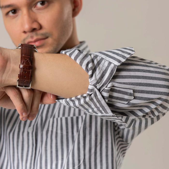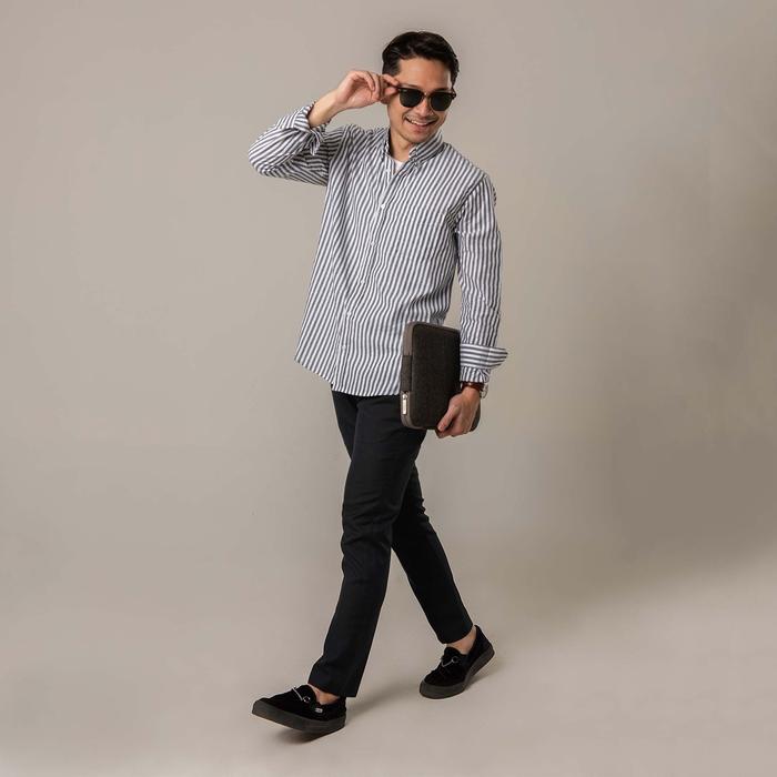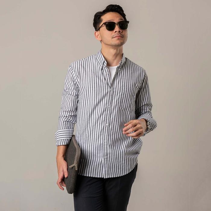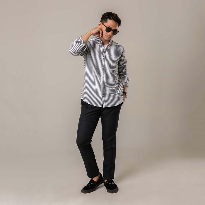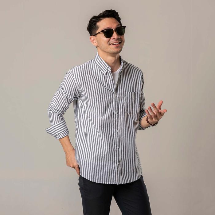 KEMEJA PRIA GARIS WOODCUTTER BASIC BUTCHER STRIPE - DARK GREY LENGAN PANJANG - B STRIP ABUTUA, S