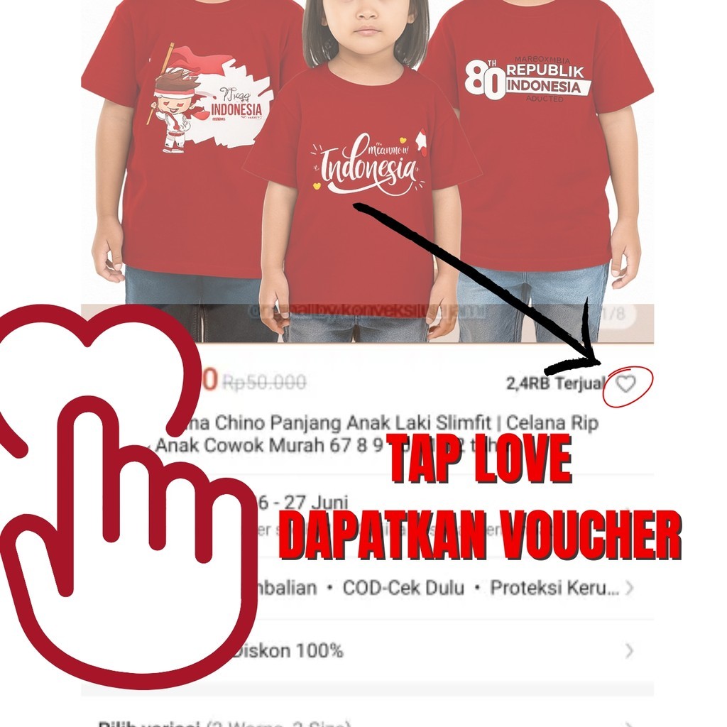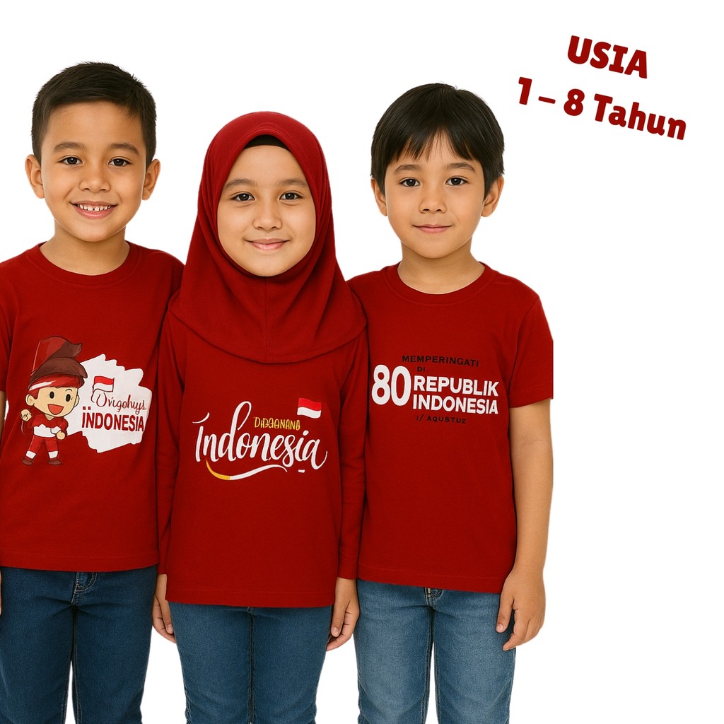 BAJU ANAK KAOS AGUSTUSAN 2025 PEREMPUAN LAKI DIRGAHAYU PUTIH MERAH RI AGUSTUS INDONESIA KEMERDEKAAN