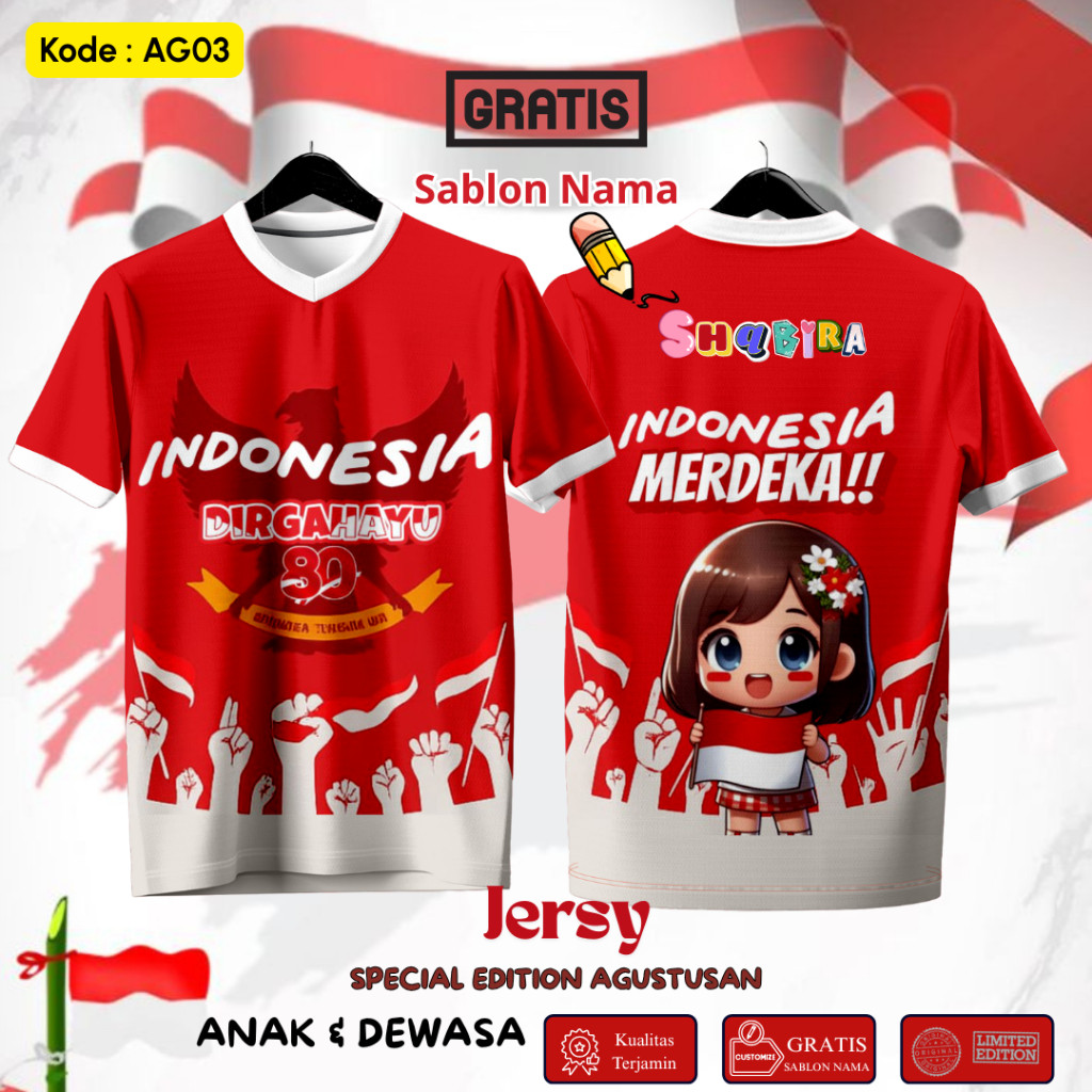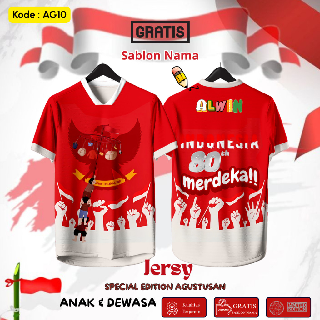 Tsalits33 - Jersey 17 Agustus Dirgahayu HUT RI-80 / Baju Kaos 17 Agustusan 2025 / Baju 17 Agustusa Terbaru 2025 / Gratis Sablon Nama