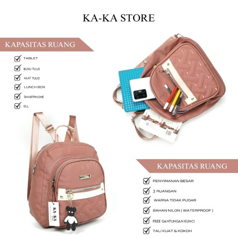 K-K Tas Gendong Wanita Tas Ransel Multifungsi Kombinasi Krem
