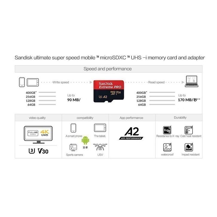 Memory Card Micro SD SanDisk Extreme PRO micro sd 32/64/128/256/512GB A2 UHS-I U3 170MB/s TF Kartu Memori Perekam