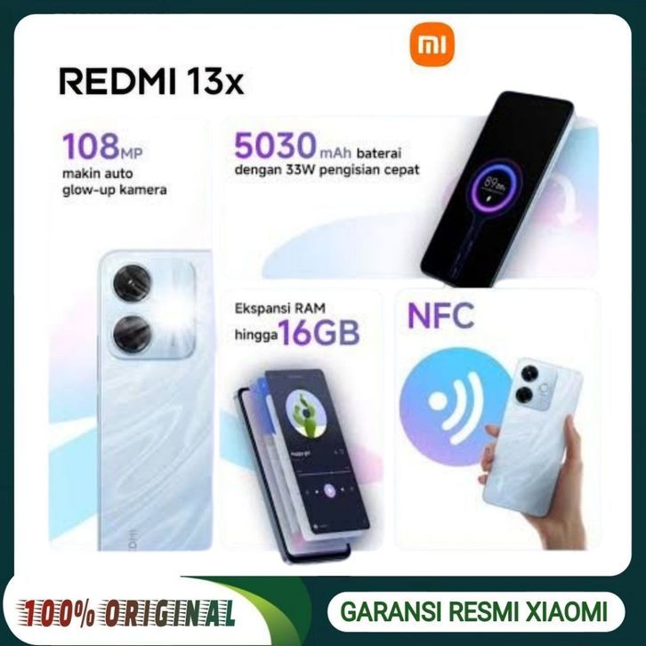 Smartphone Android Hp Android Murah XIAOMI REDMI 13X NFC RAM 8/128GB - RAM 8/256GB GARANSI RESMI XIAOMI INDONESIA