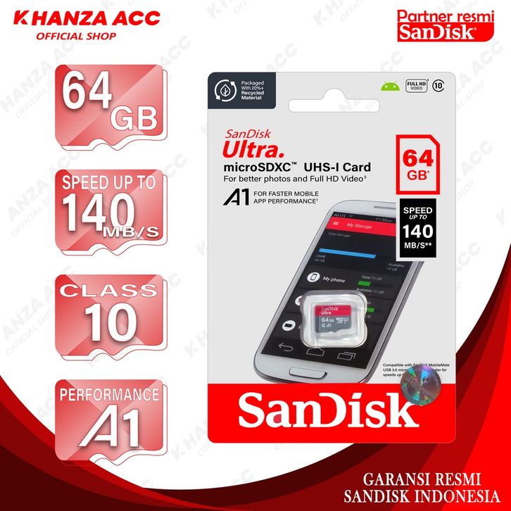 Memory Card Micro SD KHANZAACC SANDISK 64GB / 128GB / 256GB / 512GB Micro SD Kartu Memori Handphone Class 10