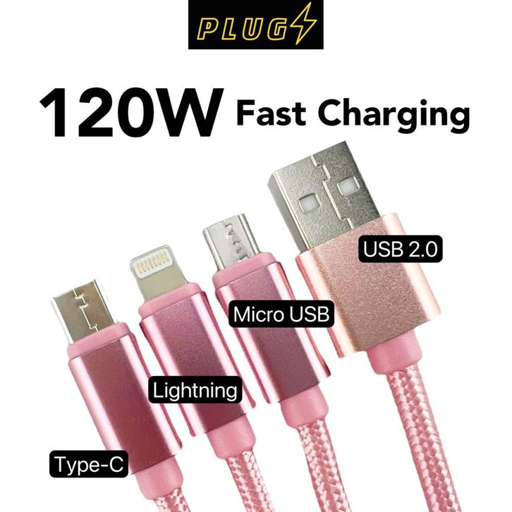 Charger HP Type C / Micro / Lightning PLUGS Charger PINK 20W Fullset Charger With 3in1USB Type C Lightning