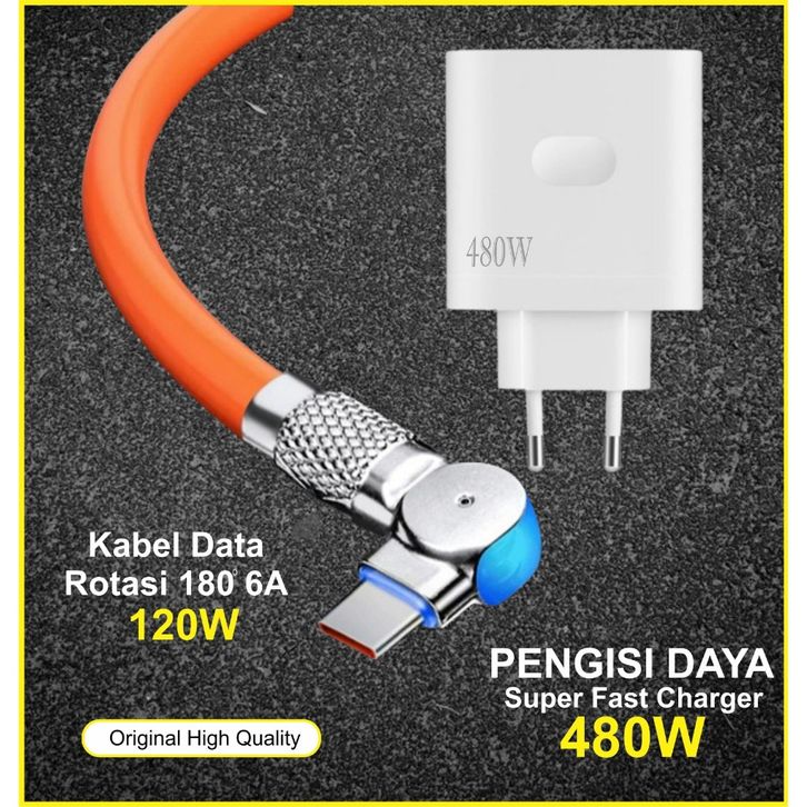 Charger HP Type C / Micro / Lightning Charger Fast Charging 480W + Kabel Data Fast Charging Putar / Rotasi Type C