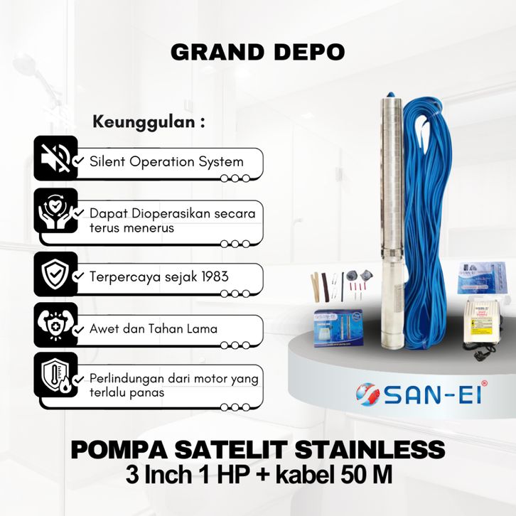 San Ei Pompa Air Satelit 3 inch 1 HP + Kabel 50 Meter Stainless / Submersible Pump Stainless