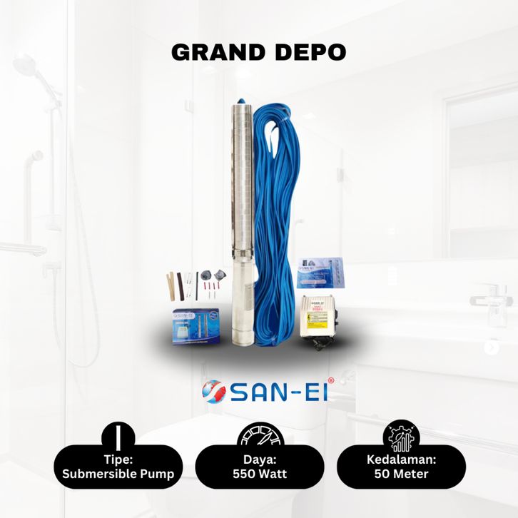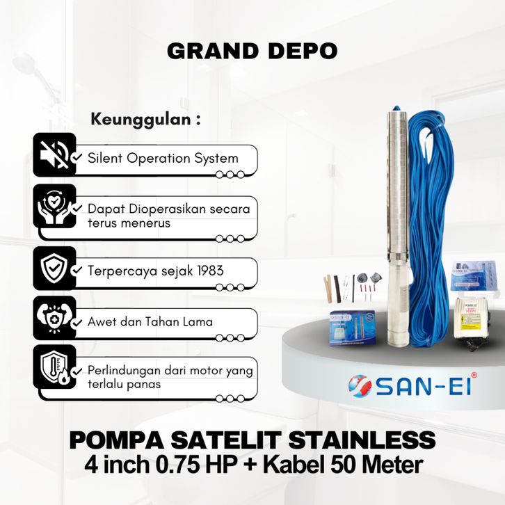 San Ei Pompa Air Satelit 4 inch 0.75 HP + Kabel 50 Meter Stainless / Submersible Pump Stainless