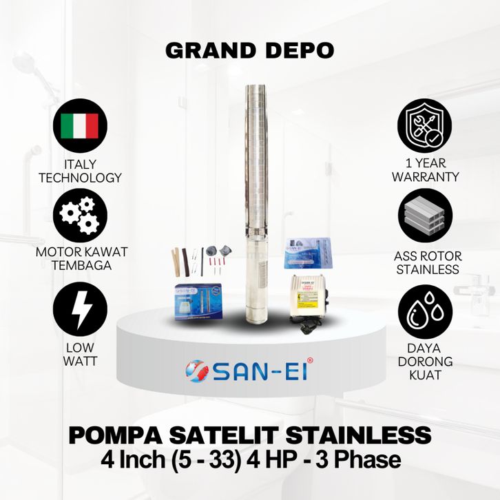 San Ei Pompa Air Satelit 4 inch (5-33) 4 HP - 3 Phase Stainless / Submersible Pump Stainless