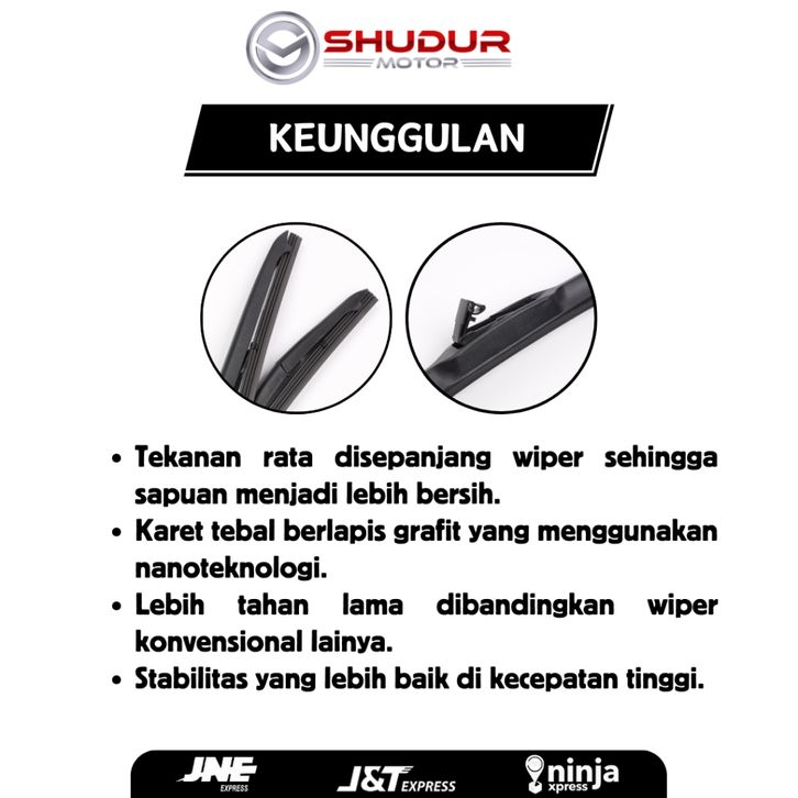 Wiper Hybrid Blade Universal Untuk Semua Jenis Mobil Universal 1 Set Kiri dan Kanan Bonus 5 Item