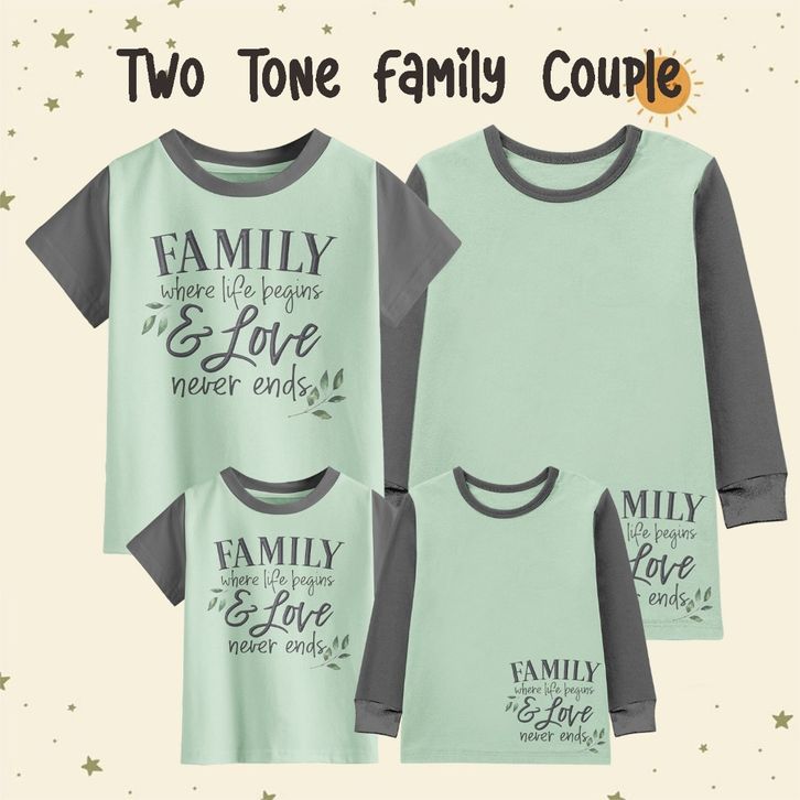 baju couple keluarga cople pasangan kaos Atasan Twotone Couple Keluarga Lengan Panjang Pendek Motif Family & Love | Min