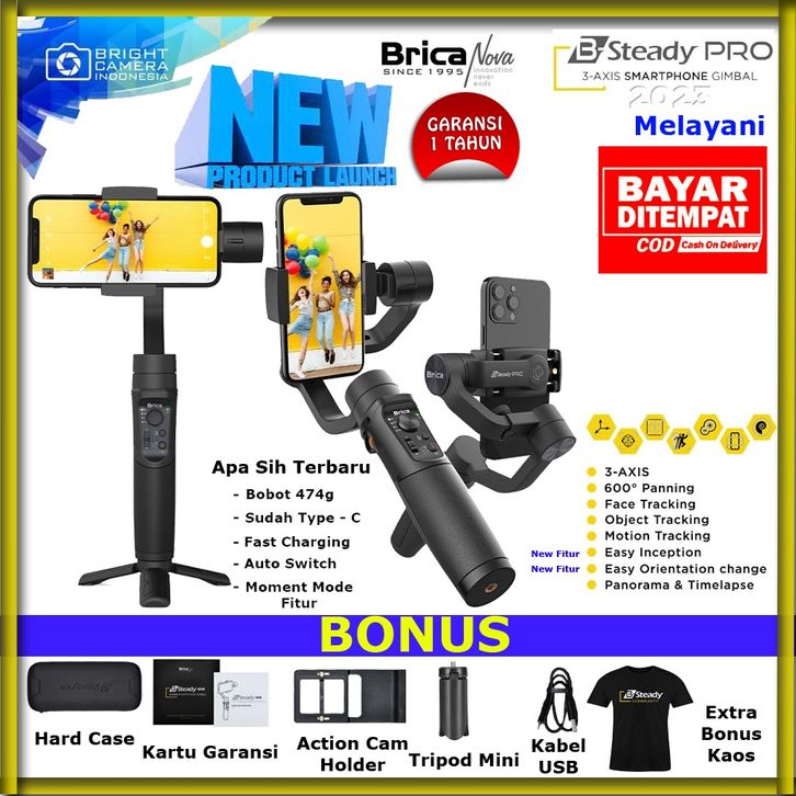 Brica B-Steady Pro - 3 Axis Gimbal Stabillizer HP - Gimbal Stabillizer Smartphone - Free Kaos