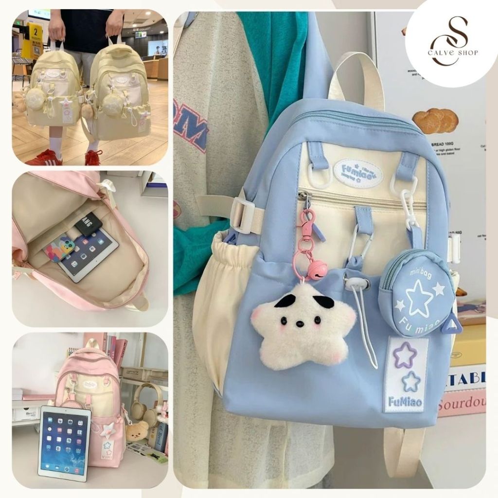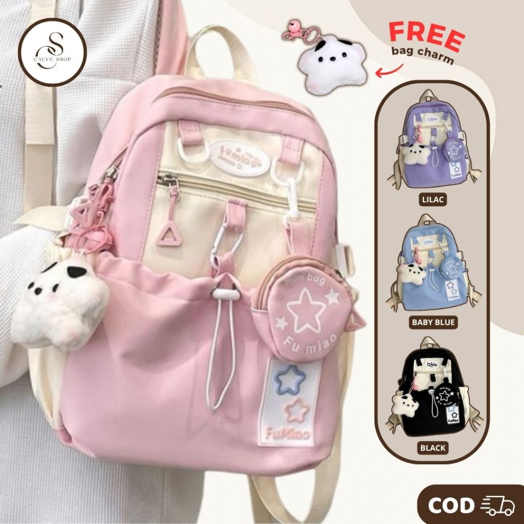 Gratis Gantungan Boneka Tas Ransel Kuliah remaja Sekolah Anak Backpack Pria Wanita Terbaru Fashion Korea Style