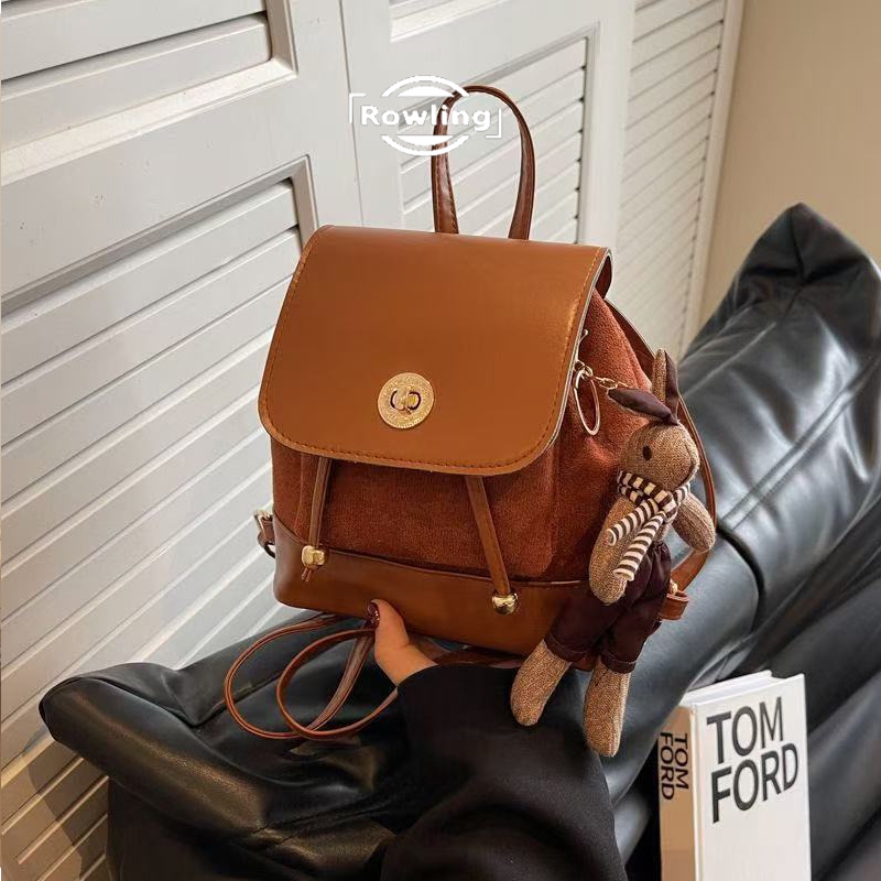 Rowling (BG-39) Tas Ransel Wanita Retro polos Lucu Ransel Serut Kecil Tas Kecil Wanita Import