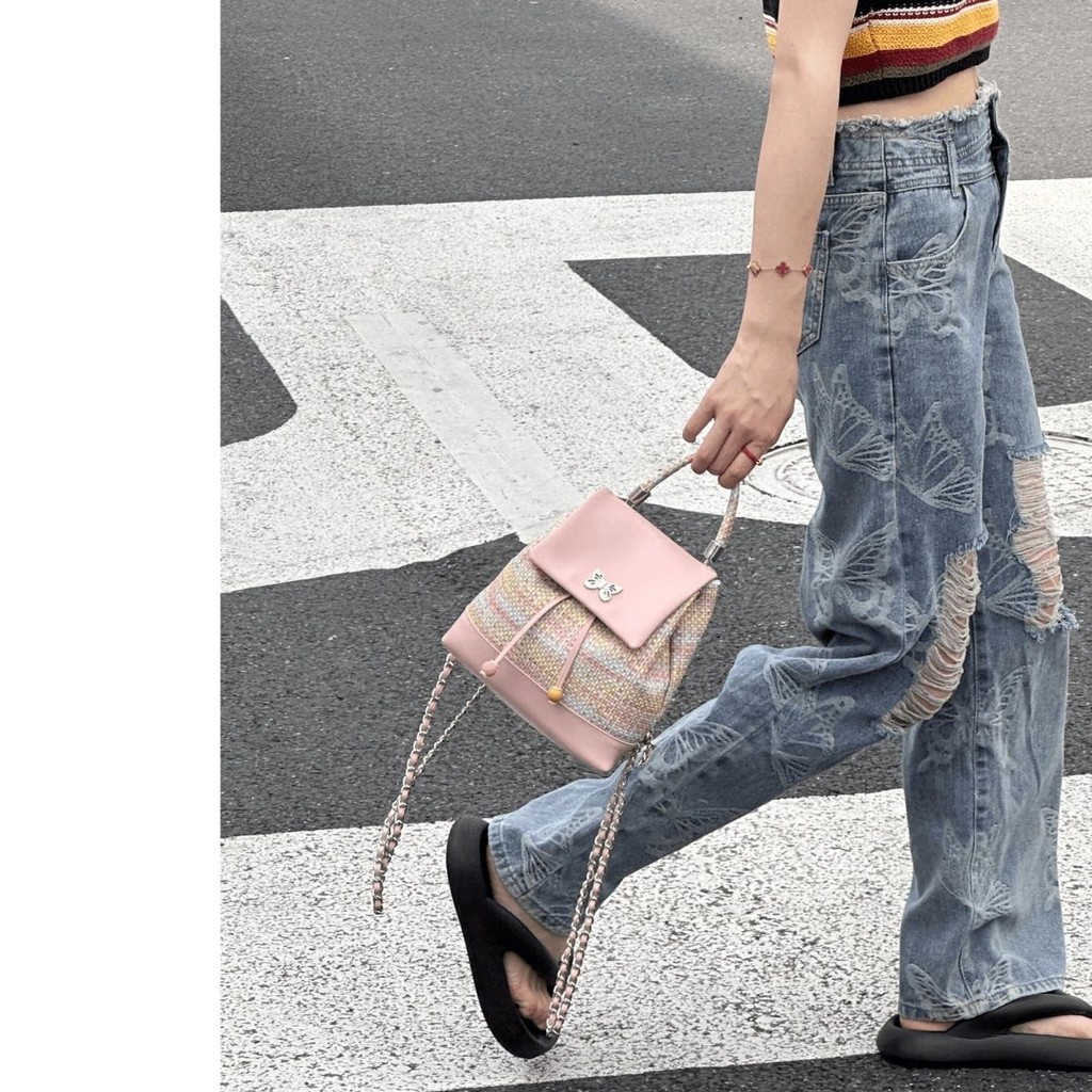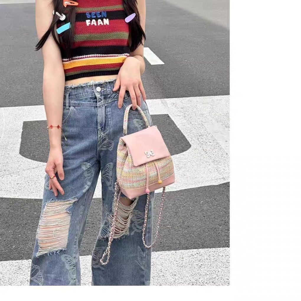 【Ready】Desain Ceruk Rempah-rempah Rantai Tas Bahu Premium Rantai Tas Ransel Wanita Baru Ransel Santai Tas Sekolah Perak