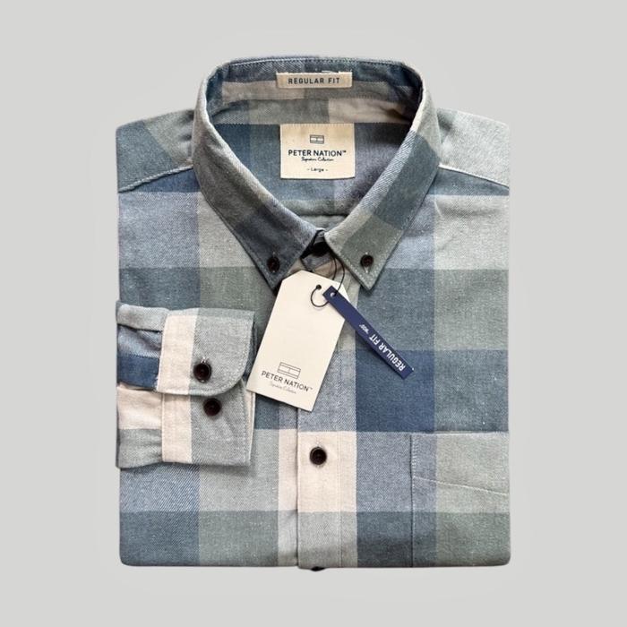 PETERNATION KEMEJA PRIA FLANEL WOOL BASIC PANJANG REGULAR FIT PT112 KOTAK CASUAL HIGH DISTRO BAJU KERAH FORMAL MOTIF - 2XL