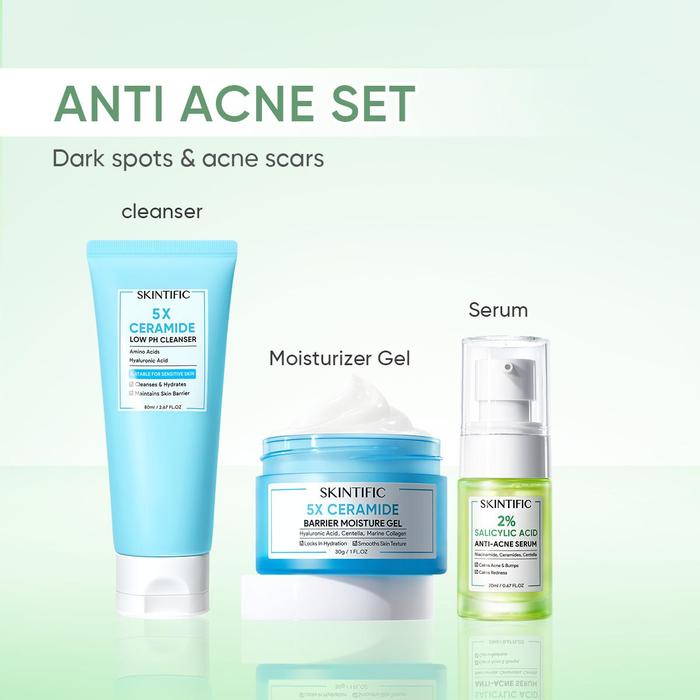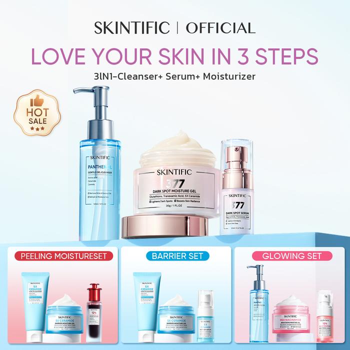 SKINTIFIC 3PCS SET GLOWING SET/ACNE SET/REPAIR BARRIER SET/ANTI DARK SPOT SET/HYDRATING SETMOISTURIZER +TONER + SERUM BUNDLE: - ANTI DARK SPOT SET