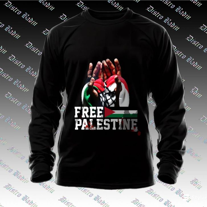 KAOS PANJANG PRIA KAOS PRIA PALESTINA KAOS DAKWAH DISTROBADJU FREE PALESTINE TANGAN PANJANG