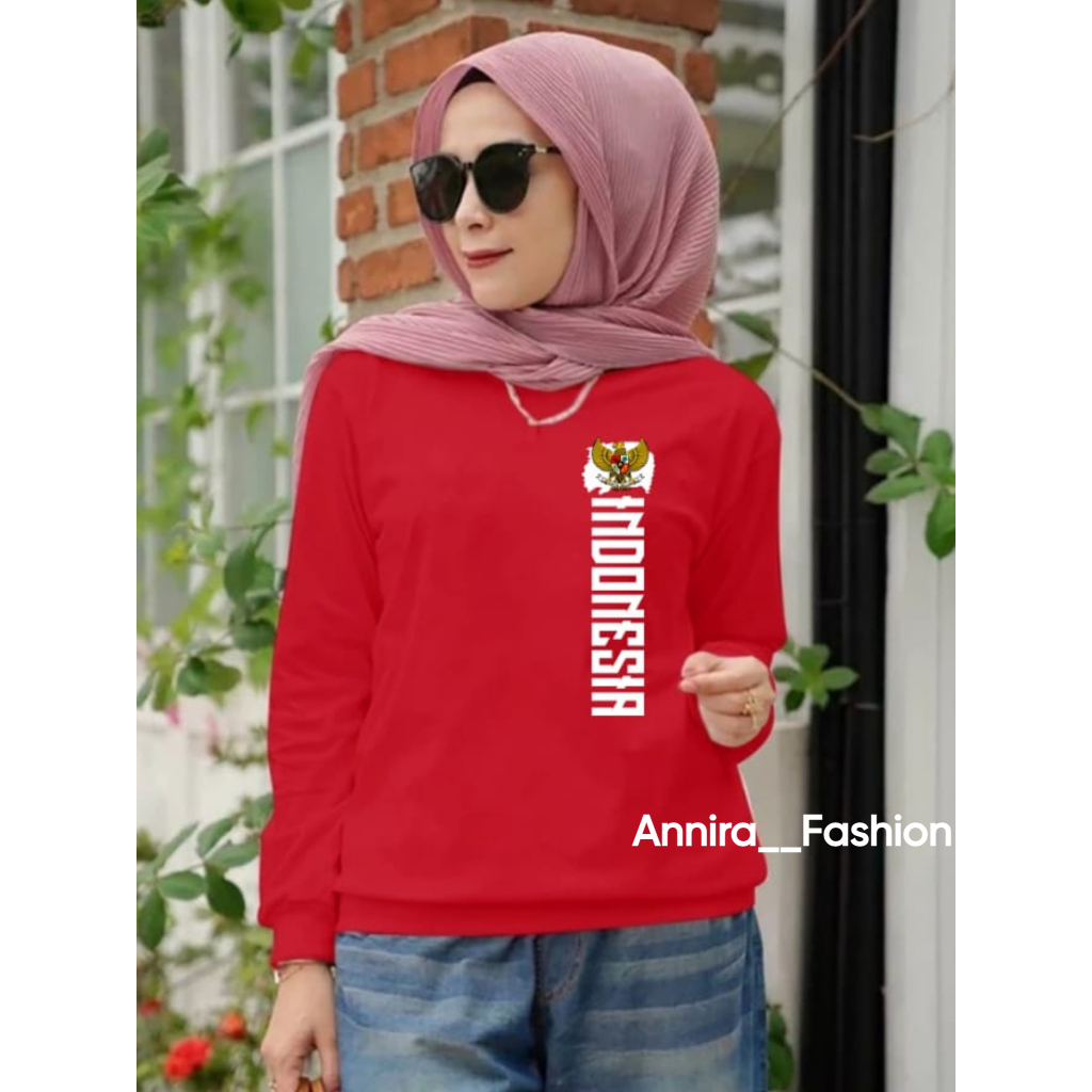 Baju Lengan Panjang Wanita Agustusan Edisi Kemerdekaan Logo Garuda Indonesia Vertikal
