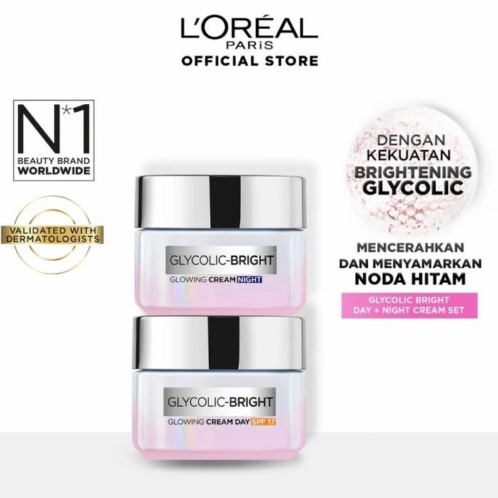 LOREAL GLYCOLIC BRIGHT DAY CREAM + NIGHT CREAM PAKET MENCERAHKAN WAJAH