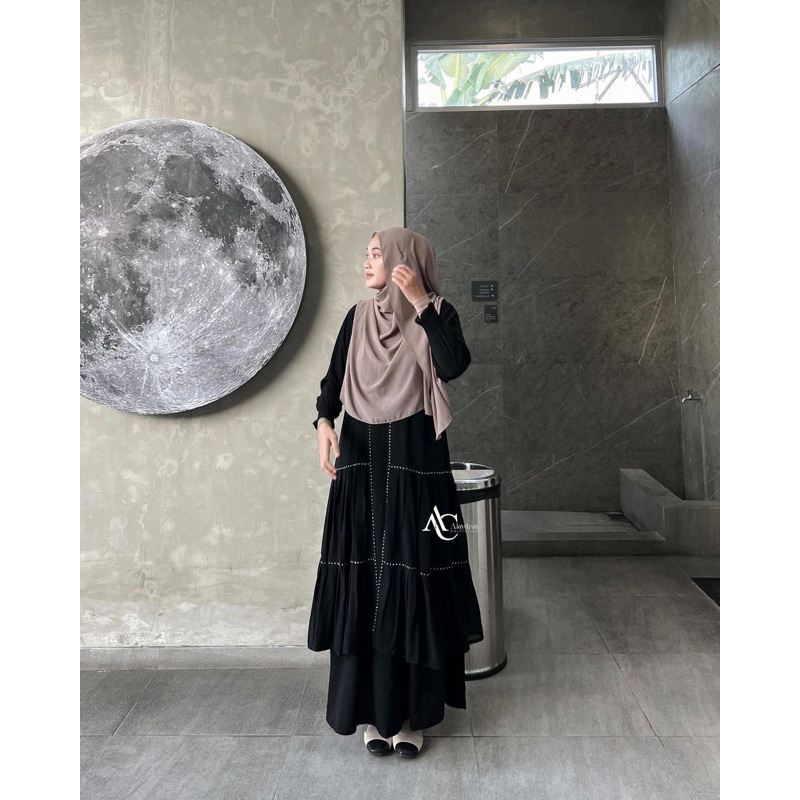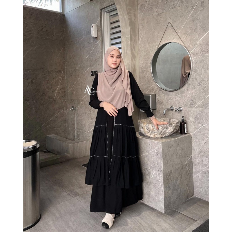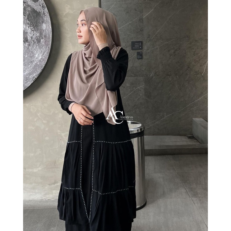 Alaydrus Collection Abaya Hitam Turkey Gamis Syari Bahan Jetblack Dan Chiffon Dress Arab Saudi 851