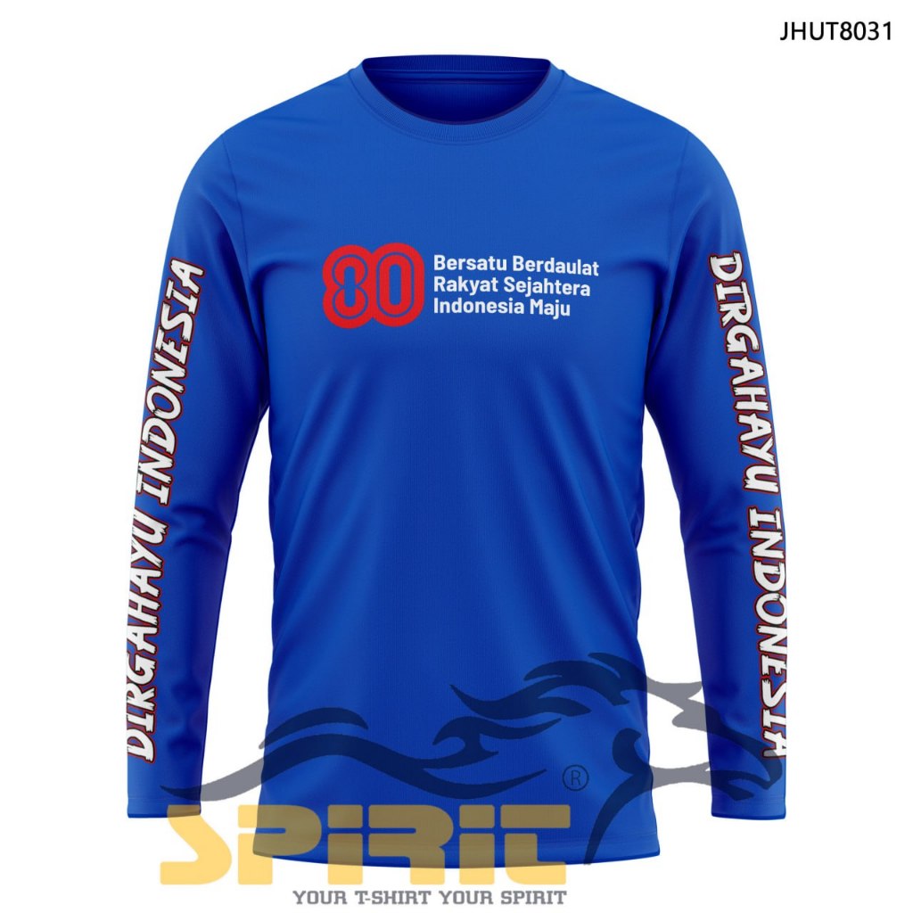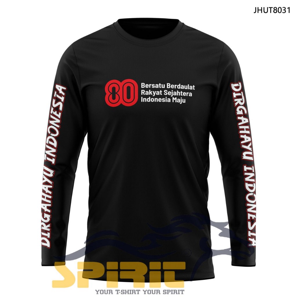 Baju HUT RI Ke-80th Logo Resmi 2025 Kaos Dirgahayu Indonesia Lengan Panjang Katun 24s Pria Wanita